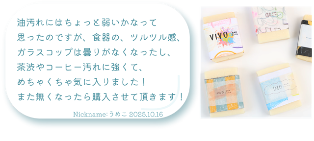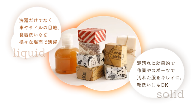 大きな窯でじっくりと作られた石けんで、油汚れをスッキリと落とす優れもの。