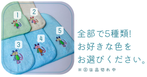 刺繍部分は施設利用者さんが描いた動物イラストを使用しています。